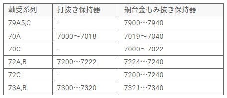- 保持器 ― ポリアミド製、鋼製、真鍮製の各種保持器を用意